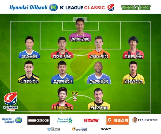 이번 라운드 베스트 11도 공개됐다. 윤일록과 스테보(전남) 최고의 공격수로 뽑힌 가운데 베스트 미드필더에는 안용우(전남) 따르따, 고창현(이상 울산) 김태환(성남)이 차지했다. 최고의 수비는 고광민 김주영(이상 서울) 알렉스(제주) 이 용(울산), 수문장은 인천의 권정혁에게 돌아갔다.