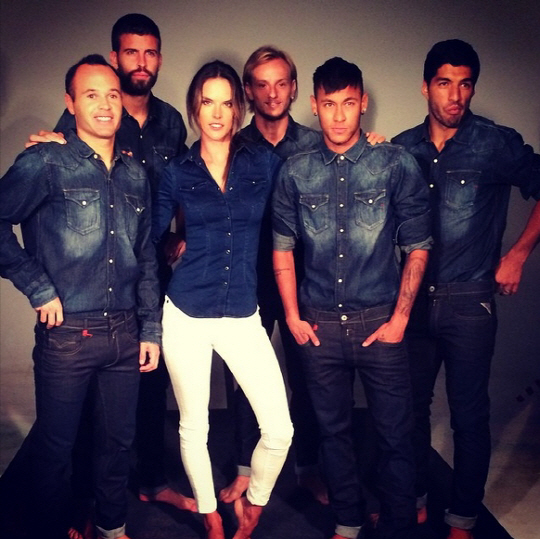 안드레스 이니에스타, 헤라르트 피케 등 베테랑과 신성 네이마르, 신입생 이반 라키티치와 루이스 수아레스 등 5명은 브라질 슈퍼모델 알렉산드라 암브로시오와 함께 포즈를 취했다.