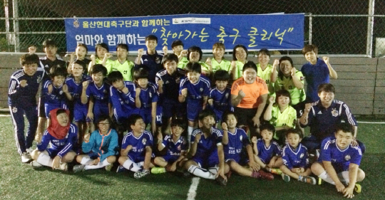 울산 현대가 울산 북구 여성축구회를 방문해 축구 클리닉을 실시했다.