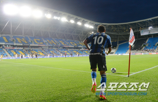 인천 유나이티드와 성남 FC의 K리그 클래식 경기가 9일 인천축구전용구장에서 열렸다. 인천 이천수가 코너킥을 하고 있다. 브라질월드컵에서 대표팀의 부진 탓에 관중석이 텅 비어있다. 성남은 올시즌 3승 4무 6패로 8위, 인천은 1승 5무 7패로 최하위에 머물러 있다. 정재근 기자 cjg@sportschosun.com/2014.07.09/