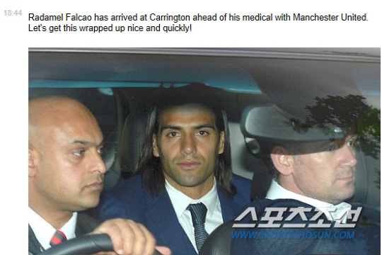 2일 영국일간 데일리메일은 '라다멜 팔카오 라이브' 코너를 마련했다. 시시각각 변화하는 팔카오 이적 상황을 트위터, 페이스북 등 SNS발 뉴스들을 통해 실시간으로 업데이트하고 있다. 이날 캐링턴에 메디컬체크를 위해 도착한 팔카오의 모습 역시 실시간으로 보도했다. 영국 BBC스포츠 역시 '맨유와 AS모나코가 팔카오의 임대 이적에 이미 합의했다. 팔카오는 1일 오후(현지시간) 맨체스터로 이동해 메디컬테스트 및 계약절차를 진행할 것'이라고 전했다. 판할 감독이 이끄는 맨유와 임대 계약에 합의했다. 팔카오의 연봉은 1200만 파운드 수준인 것으로 알려졌다.