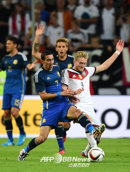 | 4일 독일과의 친선경기서 공을 다투고 있는 디 마리아(왼쪽).ⓒAFPBBNews = News1 |