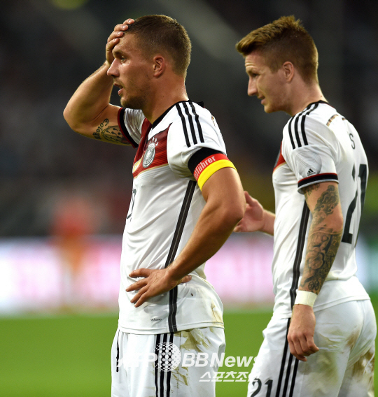 | ◇독일의 포돌스키(왼쪽)가 아르헨티나에 완패하자 아쉬워하고 있다. 뒤셀도르프(독일)=ⓒAFPBBNews = News1 |