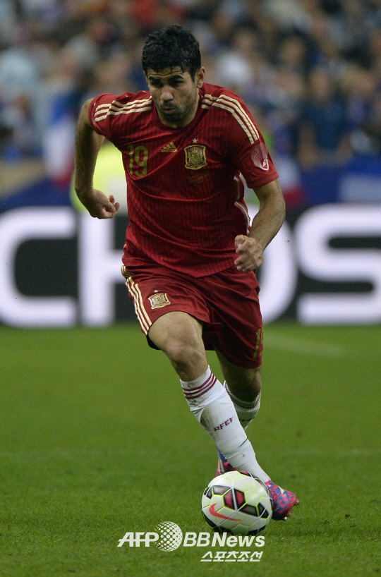 | 프랑스와의 원정 평가전에서 드리블을 하고 있는 스페인의 디에고 코스타. 파리=ⓒAFPBBNews = News1 |