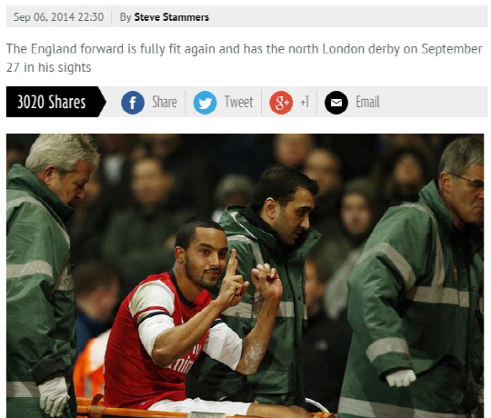 공교롭게도 월컷은 지난해 1월 토트넘과의 FA컵에서 무릎을 다쳤다. 그는 브라질월드컵 출전이 좌절됐음은 물론 8개월간 경기에 나서지 못했다. 8일(한국시각) 영국 일간지 데일리미러는 월컷이 9월28일 열리는 토트넘과의 북런던더비에서 복귀전을 치를 것이라고 예상했다. 월컷은 현재 성공적인 재활과정을 진행 중이며, 복귀를 위한 마지막 프로그램에 박차를 가하고 있다. 아스널 입장에서는 반가울 수 밖에 없는 복귀다. 아스널은 토트넘전 후 갈라타사라이와의 유럽챔피언스리그가 예정돼 있다. 이후에는 첼시전을 치른다.