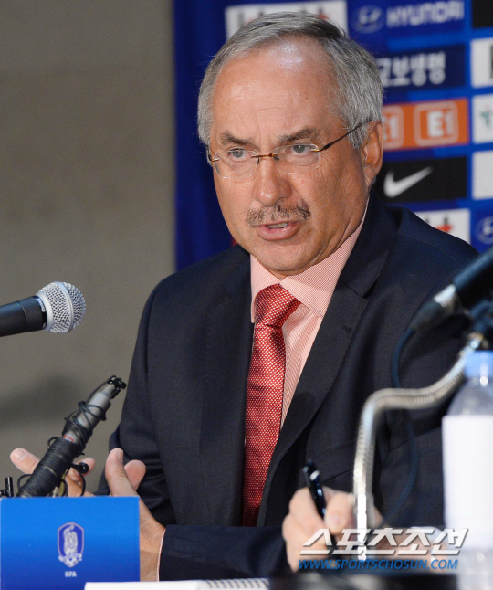 한국축구대표팀 신임 사령탑인 울리 슈틸리케 감독이 8일 오후 일산의 엠블호텔에서 감독선임과 관련한 공식 기자회견을 갖고 있다. 슈틸리케 감독은 오후 8시 고양종합운동장에서 열리는 한국과 우루과이의 경기를 관전한후 다음달 1일루터 한국의 신임 사령탑으로서 본격적인 행보에 나선다. 일산=최문영 기자 deer@sportschosun.com
