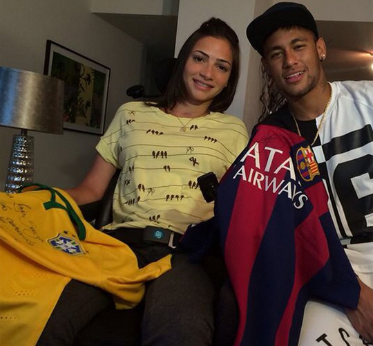 네이마르는 미국 마이애미에서 열린 콜롬비아와의 친선경기를 앞두고 시간을 쪼개 이 곳에서 재활중이던 소우자를 방문, 유니폼을 선물하며 위로의 뜻을 전했다. 네이마르는 자신의 SNS에 함께 찍은 사진을 올리며 "운명에 맞서 싸울 힘을 가진 전사 같은 여자다. 그녀를 만나 기쁘다"라며 "많은 사람들이 함께 같은 소원을 바라면 이루어질 것이다. 그녀에게 신의 가호가 있기를"이라는 글을 남겼다.