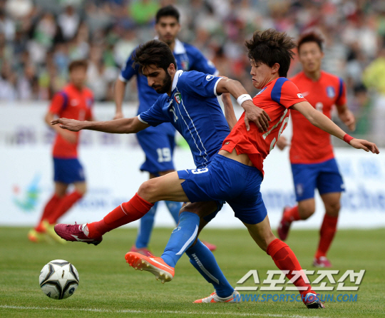 이광종 감독이 이끄는 한국 U-23대표팀이 평가전을 가졌다. 1일 인천 아시아드 주경기장에서 열린 한국과 쿠웨이트의 평가전에서 이재성과 알레브라힘이 볼을 다투고 있다. 인천=허상욱 기자 wook@sportschosun.com/2014.06.01/ |
