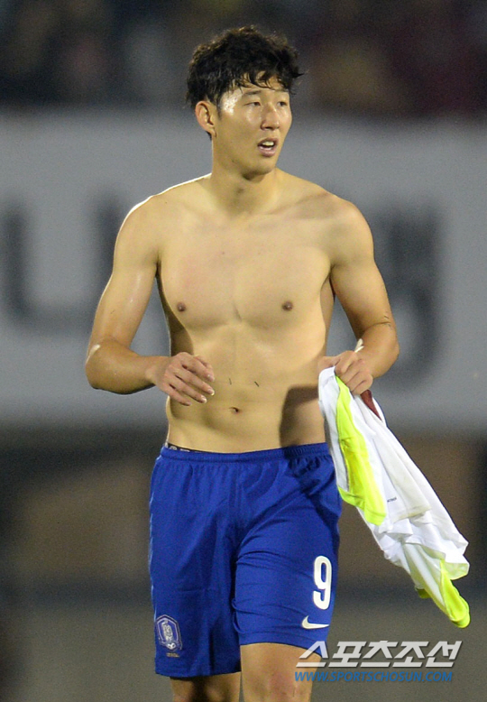 신태용 코치가 이끄는 축구대표팀이 5일 오후 부천종합운동장에서 FIFA 랭킹 29위의 베네수엘라와 친선경기를 벌였다. 한국이 3-1로 승리한 가운데 손흥민이 상대편 선수와 유니폼을 교환하고 있다. 부천=정재근 기자cjg@sportschosun.com/2014.09.05/