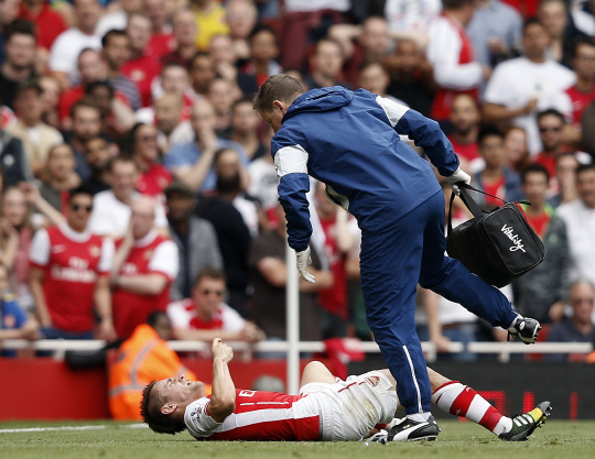 마티유 드뷔시(아스널)의 부상 정도는 커 보이지 않았다.