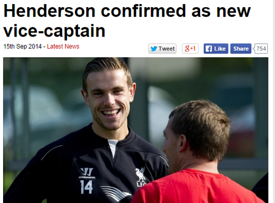 결국 지난 시즌 팀의 중심 선수로 떠오른 헨더슨은 올시즌 부주장을 맡으며 팀의 미래로 낙점됐다. 주장인 제라드가 선수생활 말년임을 감안하면, 사실상 리버풀의 차기 주장으로 지목된 셈이다.