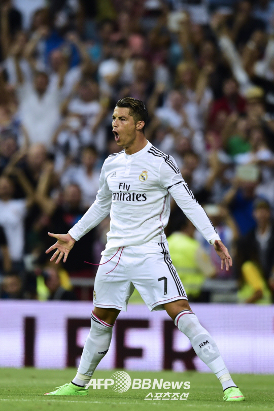 | 레알 마드리드 바젤 전에서 골을 터뜨린 호날두가 포효하고 있다. ⓒAFPBBNews = News1 |