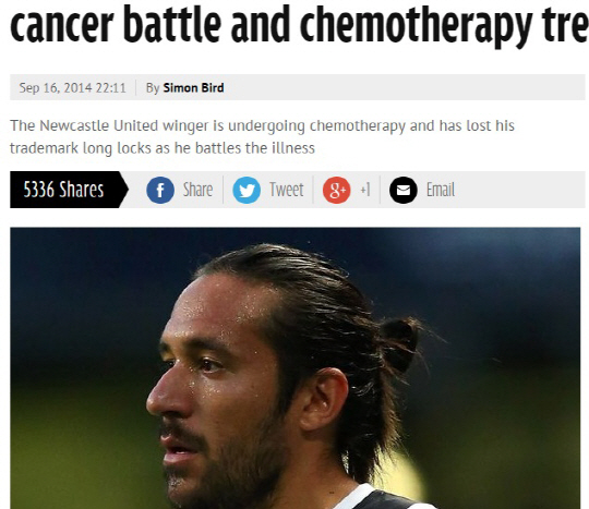 아르헨티나 대표팀 출신 윙어 호나스 구티에레스(뉴캐슬)가 고환암 투병 중인 것으로 알려졌다.