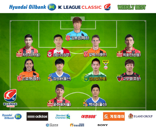 26라운드 최고의 공격수로는 백지훈(울산)과 윤주태(서울)이 꼽혔다. 고무열(포항) 김성환(울산) 드로겟(제주)은 미드필드 부문에 이름을 올렸고 최고의 수비수에는 최효진 차두리(이상 서울) 알렉스(제주) 강민수(상주)가 선정됐다. 5차례 유표 슈팅을 막아내며 무실점 경기를 펼친 제주의 김호준이 26라운드 최고의 골키퍼가 됐다. 위클리 베스트 매치는 서울-인천(3대1 서울 승)전이었고 베스트팀은 전북이 차지했다.