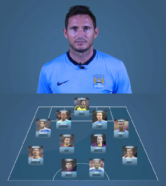 램파드는 두 번째 스트라이커로 리오넬 메시(바르셀로나)를 빼놓지 않으면서 4-4-2 대형의 베스트 팀을 완성했다.