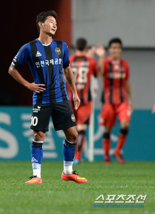 FC서울과 인천 유나이티드의 K리그 클래식 2014 21라운드 경기가 16일 서울월드컵경기장에서 열렸다. 인천 이천수가 전반 서울 김치우의 팀 세번째골이 터지자 아쉬워하고 있다. 상암=허상욱 기자 wook@sportschosun.com/2014.08.16/