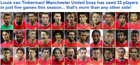 맨유가 올시즌 프리미어리그와 캐피털원컵를 합쳐 총 5경기를 치른 상황에서, 판 할은 무려 33명의 선수를 로스터에 올렸다. 수비수에 9명, 미드필더에 17명, 공격수에 6명이 번갈아 기용됐다. 아직 부상에서 회복되지 않은 루크 쇼와 마이클 캐릭은 제외된 수치다.
