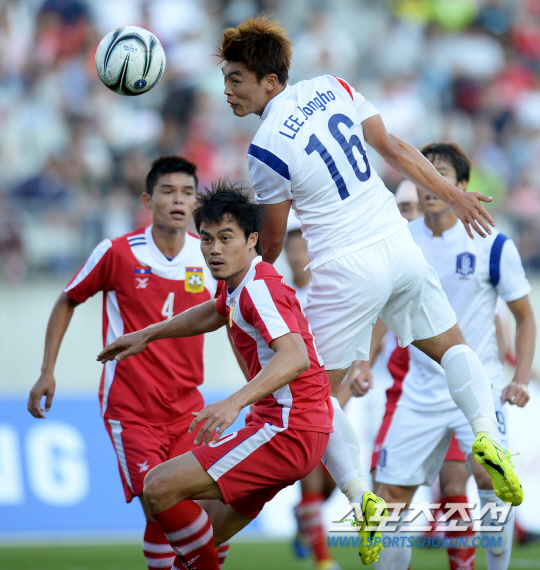 이광종 감독이 이끄는 아시안게임 남자축구대표팀이 21일 화성종합경기타운에서 라오스와 A조 조별리그 최종전을 벌였다. 이종호가 라오스 문전에서 날카로운 헤딩슛을 시도하고 있다.