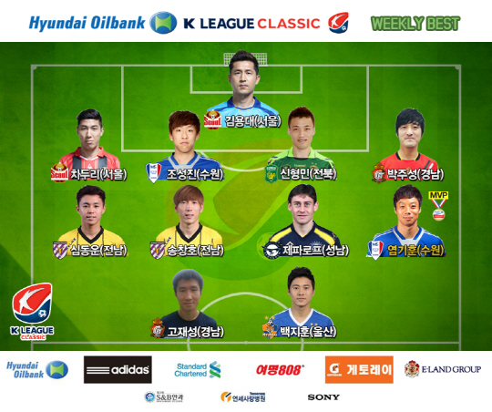 이번 라운드 베스트 11도 공개됐다. 백지훈(울산)과 고재성(경남)이 최고의 공격수로 뽑힌 가운데 베스트 미드필더에는 염기훈을 비롯해 제파로프(성남) 송창호 심동운(이상 전남)이 선정됐다. 최고의 수비수는 박주성(경남) 신형민(전북) 조성진(수원) 차두리(서울)가 이름을 올렸다. 김용대(서울)는 최고 수문장이 됐다.