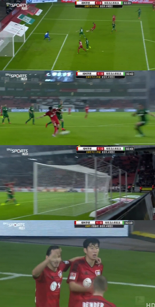 손흥민은 상대 페널티지역 오른쪽으로 파고들다가 로베르토 힐베르트의 패스를 이어받아 오른발 슛으로 상대 골문을 갈랐다.