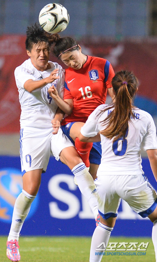 한국여자축구대표팀과 대만여자축구대표팀의 2014인천아시안게임 8강전 경기가 26일 인천문학축구장에서 열렸다. 한국의 이영주가 대만 리슈친과 치열한 볼경합을 벌이고 있다.