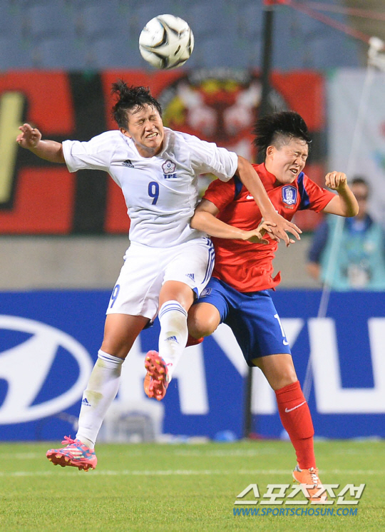 한국여자축구대표팀과 대만여자축구대표팀의 2014인천아시안게임 8강전 경기가 26일 인천문학축구장에서 열렸다. 한국의 이영주가 대만 리슈친과 치열한 볼경합을 벌이고 있다.