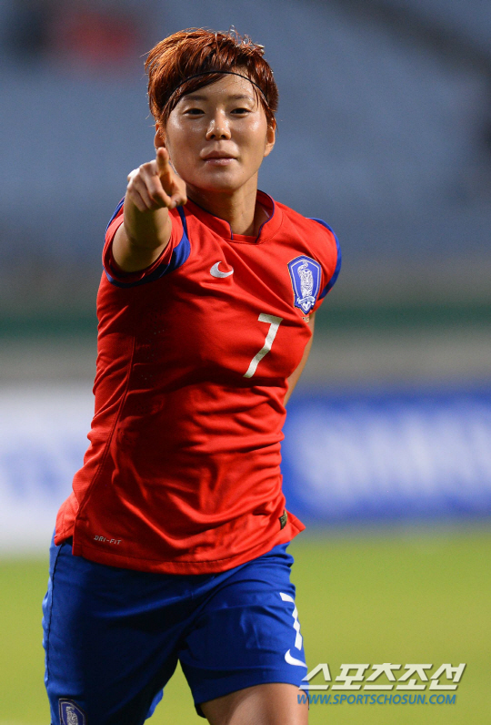 한국여자축구대표팀과 대만여자축구대표팀의 2014인천아시안게임 8강전 경기가 26일 인천문학축구장에서 열렸다. 한국의 전가을이 팀의 첫번째 골을 성공시키고 동료들과 환호하고 있다.