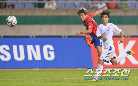 한국여자축구대표팀과 대만여자축구대표팀의 2014인천아시안게임 8강전 경기가 26일 인천문학축구장에서 열렸다. 한국의 박희영이 대만의 링츙잉의 수비사이로 슈팅을 날리고 있다.
