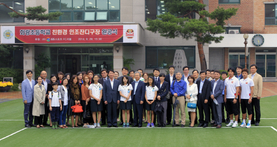 FC서울이 학교법인 정의학원과 지난 29일 화랑초등학교에서 FC서울 장기주 대표이사와 화랑초등학교 임태수 교장이 참석한 가운데 인조잔디구장 개장식을 가졌다.
