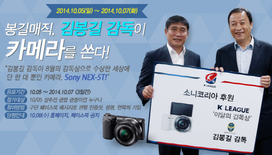 해당 이벤트는 5일 상주전을 관람한 사람만 참여할 수 있으며, 당첨자 발표는 8일 진행된다. 당첨자는 인천의 다음 홈경기인 11일 포항전 시작 전 김 감독이 직접 카메라를 증정할 예정이다.