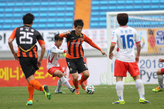 2014년 현대오일뱅크 K-리그 챌린지(2부리그)의 경쟁이 정점으로 치닫고 있다. 올 시즌 챌린지는 1위 팀이 클래식 12위와 자리를 맞바꾼다. 챌린지 2위부터 4위까지는 플레이오프를 거쳐 승자가 클래식 11위팀과 홈 앤드 어웨이 승강플레이오프를 치른다. 플레이오프 진출을 위한 전쟁이 치열하다. 2위 안산(승점 44)부터 8위 대구(승점 37)까지 줄지어 늘어서 있다. 7팀의 간격은 불과 승점 7점차다. 일찌감치 간격을 벌린 선두 대전(승점 59)을 제외한 나머지 팀들이 매 라운드마다 순위를 바꾸고 있다.