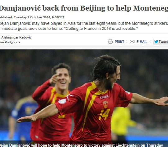 UEFA는 월드컵이나 유로 본선 등 메이저대회의 출전이 번번이 좌절된 몬테네그로의 한을 풀어줄 해결사로 데얀을 주목했다. 인터뷰도 실었다. 눈길을 끈 부분이 한국에 대한 애정이었다. 그는 올시즌을 앞두고 중국 리그로 장쑤로 이적했다가 여름이적시장에서 베이징 궈안으로 다시 말을 갈아탔다.
