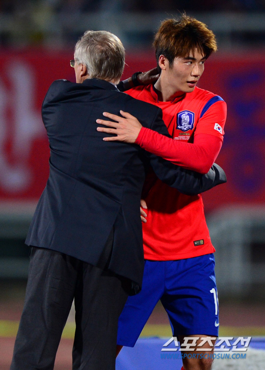 ◇기성용이 10일 천안종합운동장에서 열린 파라과이와의 평가전에서 2-0으로 앞서던 후반 35분 교체도어 벤치로 물러나면서 울리 슈틸리케 감독과 포옹을 나누고 있다. 천안=송정헌 기자 songs@sportschosun.com
