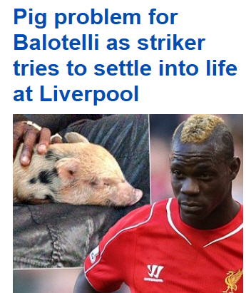 11일 영국일간 데일리메일은 올시즌 1600만 파운드의 이적료로 AC밀란에서 리버풀로 둥지를 옮긴 발로텔리의 숨은 고민을 공개했다. 발로텔리는 올시즌 프리미어리그로 이적하는 과정에서, 키우던 애완돼지를 영국에 데려오지 못했다. '수퍼'라는 이름의 애완돼지를 영국으로 데려오기 위해서는 영국 환경식품농림부에 돼지 양육자로 자신을 등록해야 한다. 그다음 해당 돼지가 여행에 문제가 없고, 영국내에 질병을 옮길 염려가 없음을 증명하는 건강증명서와 관련 증빙서류들을 제출해야만 한다. 바쁘게 이적하는 과정에서 관련서류를 챙기지 못하는 바람에 '수퍼'와의 이별이 길어지게 됐다. AC밀란 시절 직접 사서 기르며 정을 붙인 '수퍼'와의 생이별은 발로텔리에게 큰 고통을 주고 있다. 자신의 별명 '수퍼마리오'에서 '수퍼'를 떼어 이름을 붙일 만큼 애정을 과시해 왔다. 데일리메일은 올시즌 발로텔리가 1골에 그친 점을 지적하면서 '돼지 문제가 발로텔리의 리버풀 적응에 어려움을 주고 있다'고 썼다.