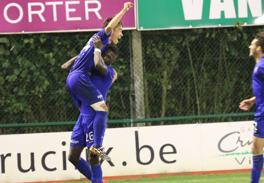 | ◇황진성이 12일(한국시각) 벨기에 비하통에서 펼쳐진 벨기에 2부리그 11라운드 경기에서 후반 17분 득점에 성공한 뒤 환호하고 있다. 사진제공=스포티즌 |