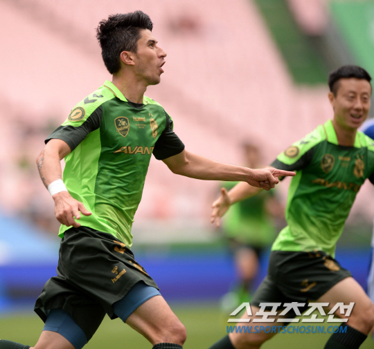 전북과 울산의 2014 K리그 클래식 31라운드 경기가 12일 전주월드컵경기장에서 열렸다. 후반 전북 카이오가 선제골을 터뜨린 후 환호하고 있다. 전주=허상욱 기자 wook@sportschosun.com/2014.10.12/