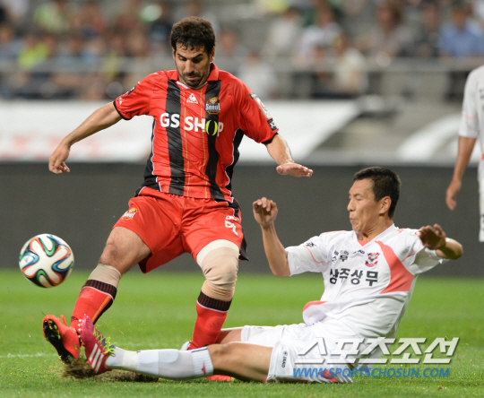 그 분위기가 이어졌다. 배수진을 친 상주가 12일 상주시민운동장에서 벌어진 2014년 현대오일뱅크 K-리그 클래식에서 서울을 1대0으로 꺾으며 무승의 늪에서 탈출했다. 후반 5분 결승골이 터졌다. 김창훈의 스루패스를 이정협이 골로 연결했다.