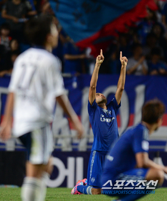 수원 삼성과 울산 현대의 2014 K리그 클래식 경기가 10일 수원월드컵경기장에서 열렸다. 선제골을 넣은 수원 로저가 팀이 2-0으로 승리하자 세리머니를 하며 기쁨을 만끽하고 있다. 수원=정재근 기자cjg@sportschosun.com/2014.09.10/