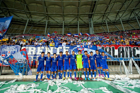 수원이 진주종합운동장에서 열린 경남과의 경기에서 1대0으로 승리했다. 경기 후 선수들이 팬들과 포즈를 취했다. 사진제공=수원 삼성
