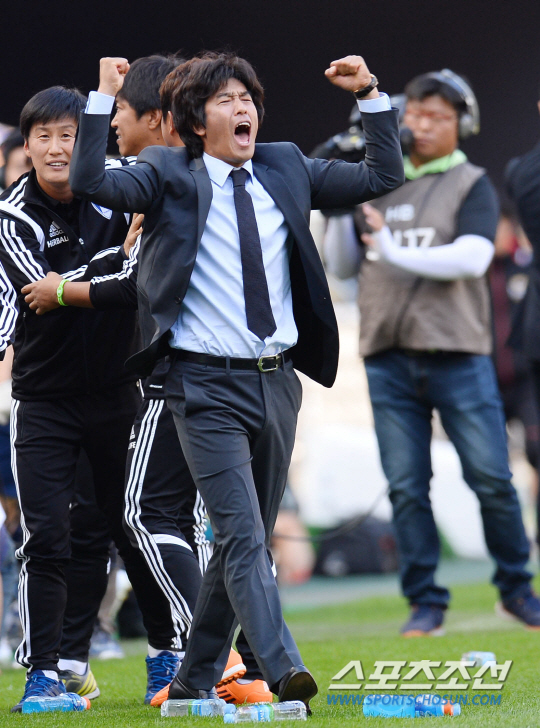 2014 프로축구 K리그 클래식 30라운드 FC서울과 수원삼성의 경기가 5일 서울월드컵경기장에서 열렸다. 수원 서정원 감독이 서울을 상대로 1대0 승리를 확정짓고 포효하고 있다. 상암=최문영 기자 deer@sportschosun.com