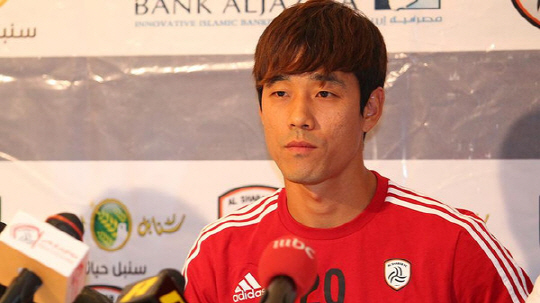 | ◇박주영이 10일(한국시각) 사우디 리야드에서 열린 알샤밥 공식 기자회견에서 취재진의 질문을 듣고 있다. 사진캡쳐=알아라비야 홈페이지 |