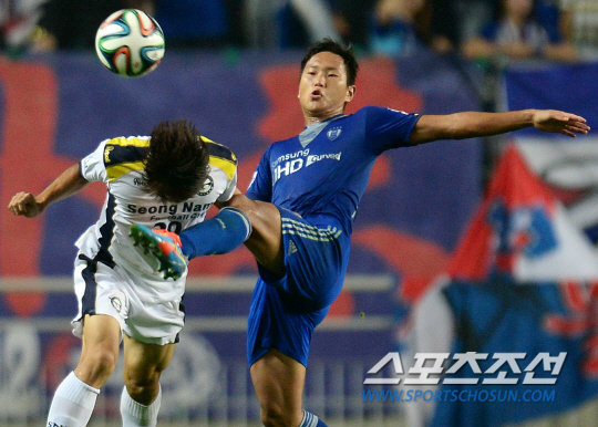수원 삼성과 성남 FC의 K리그 클래식 22라운드 경기가 24일 수원월드컵경기장에서 열렸다. 수원 정대세와 성남 유청윤이 공을 다투다 위험한 상황이 연출되고 있다. 3위 수원은 지난 21라운드에서 전남에 패하며 상승세가 꺾였지만 홈에서 4연승을 기록하고 있다. 성남은 최근 3연패를 당하며 꼴찌로 추락한 가운데 홈에서 강한 수원을 상대로 벅찬 승부를 펼친다. 수원=정재근 기자cjg@sportschosun.com/2014.08.24/