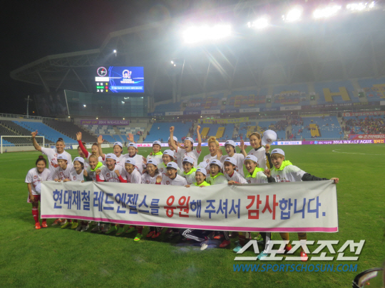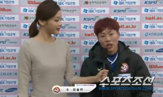 20일 WK-리그 챔피언결정전에서 고양대교를 합산 스코어 1대0으로 꺾고 우승 트로피를 들어올린 정설빈이 활짝 웃었다. 챔피언결정 1차전의 한골을 끝까지 무실점으로 지켰다. 후반 교체투입된 정설빈은 상대 수비 실수를 놓치지 않고, 강력한 돌파와 자신감 넘치는 슈팅으로 1대0 승리를 이끌었다. 골 직후 빨강머리 정설빈은 손을 귀에 갖다대는 화끈한 세리머니로 팬들의 환호를 이끌어냈다. 2차전 양팀이 90분 내내 공방을 거듭하며 0대0으로 비겼다. 지난해에 이어 2년 연속 통합우승의 꿈을 이뤘다.