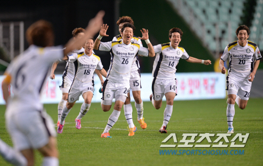 공은 역시 둥글었다. 모두의 예상이 빗나갔다. 120분간의 연장 혈투와 승부차기가 끝난뒤 김학범 성남 감독의 얼굴에 미소가 번졌다. '더블(리그, FA컵 동시 우승)'을 노리던 최강희 전북 감독의 얼굴은 일그러졌다.