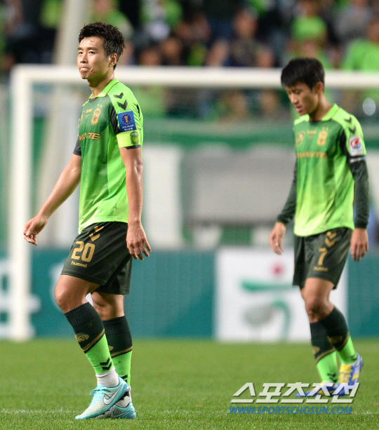 전북 현대와 성남 일화의 2014 FA컵 4강전이 22일 전주월드컵경기장에서 열렸다. 전반전이 0-0으로 끝난 가운데 전북 이동국이 아쉬운 표정으로 들어가고 있다. 상주 상무와 FC 서울이 같은 시간 상주시민운동장에서 결승 진출을 놓고 대결을 벌이는 가운데 내년 아시아축구연맹(AFC) 챔피언스리그 출전권이 걸린 FA컵 결승은 다음달 23일 벌어진다. 전주=정재근 기자 cjg@sportschosun.com/2014.10.22/ |