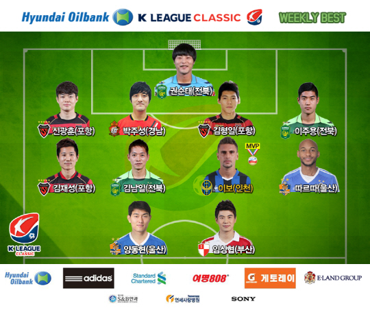 33라운드 최고의 공격수로는 3경기 연속골의 주인공 임상협(부산)과 양동현(울산)이 선정됐다. 이보, 따르따(울산), 김남일(전북), 김재성(포항)이 베스트 미드필더에, 이주용(전북) 김형일 신광훈(이상 포항) 박주성(경남)이 최고의 수비수에 이름을 올렸다. 최고의 선방을 펼친 골키퍼는 전북의 권순태였다. 33라운드 최고의 팀에는 울산이, 위클리매치에는 인천-전남전무)이 선정됐다.