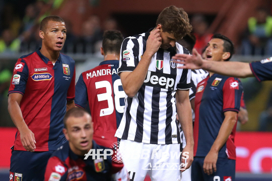 ◇유벤투스의 토레스가 기회를 놓치자 아쉬워하고 있다. 제노바(이탈리아)=ⓒAFPBBNews = News1