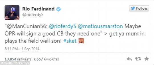 문제는 퍼디낸드가 자신의 트위터에 남긴 한 단 어 때문이다. 지난 9월 1일 퍼디낸드는 자신의 트위터에 'QPR은 좋은 센터백을 새로 영입해야 한다'는 글을 올린 맨시티 팬을 향해 '너희 엄마를 들여보내면 잘할 거야'라는 답과 함께 '스켓(sket)'이라는 태그를 달았다. 퍼디낸드가 태그로 단 '스켓'이라는 단어는 카리브해 연안에서 '창녀, 매춘부'를 일컫는 비속어다. 580만명의 팔로어를 거느린 스타플레이어의 SNS가 대중과 팬들에게 미칠 파급효과에 대한 우려를 드러냈다.