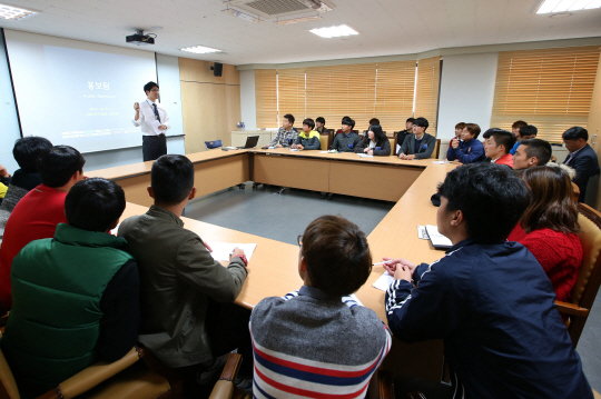 '모두가 즐길 수 있는 축구 문화 만들기'를 폭표로 대한축구협회가 추진하고 있는 'Fan First 프로그램' 중 하나인 'Dream KAF(축구협회 및 파주NFC 견학 프로그램)' 9회차는 호남대학교의 요청으로 종전의 개인 또는 소그룹 단위가 아닌 단체 견학으로 진행됐다. 축구회관을 방문한 24명의 축구학과 재학생들은 학교경기팀 및 홍보팀 직원들이 진행한 실무자 특강시 많은 질문을 던지며 평소의 궁금증을 풀고, 직간접적인 경험을 쌓았다. 또 대한민국 축구의 요람인 파주NFC(국가대표팀 트레이닝센터) 내의 각종 훈련 및 편의시설 등을 견학하며 미래의 축구산업 전문인력으로의 꿈을 키웠다. 하성룡 기자 jackiechan@sportschosun.com