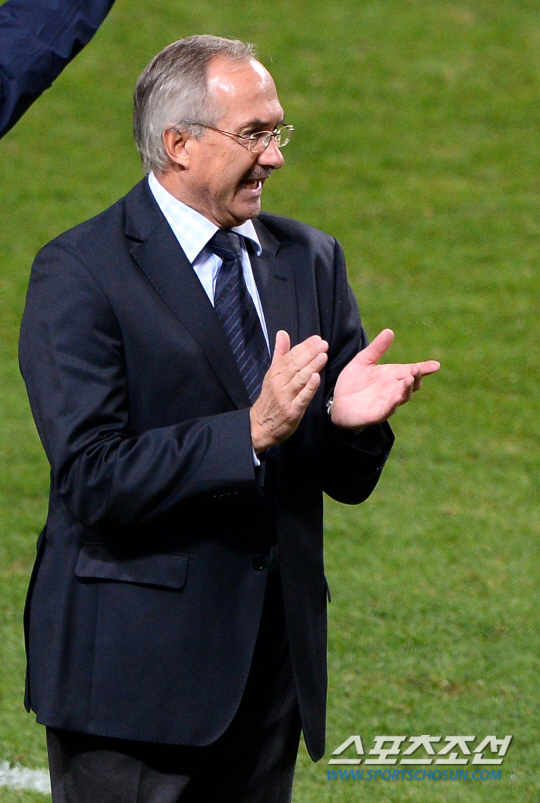 슈틸리케 감독이 이끄는 축구대표팀이 14일 오후 서울 상암동 서울월드컵경기장에서 코스타리카와 경기를 펼쳤다. 후반 코스타리카에 경기를 끌려가자 선수들에게 박수를 보내고 있는 슈틸리케 감독. 상암=송정헌 기자 songs@sportschosun.com